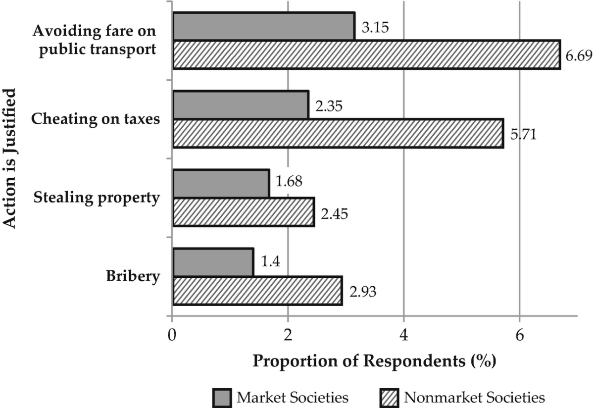 Figura 3. Sociedades de mercado frente a sociedades no mercantiles en cuanto a comportamientos deshonestos