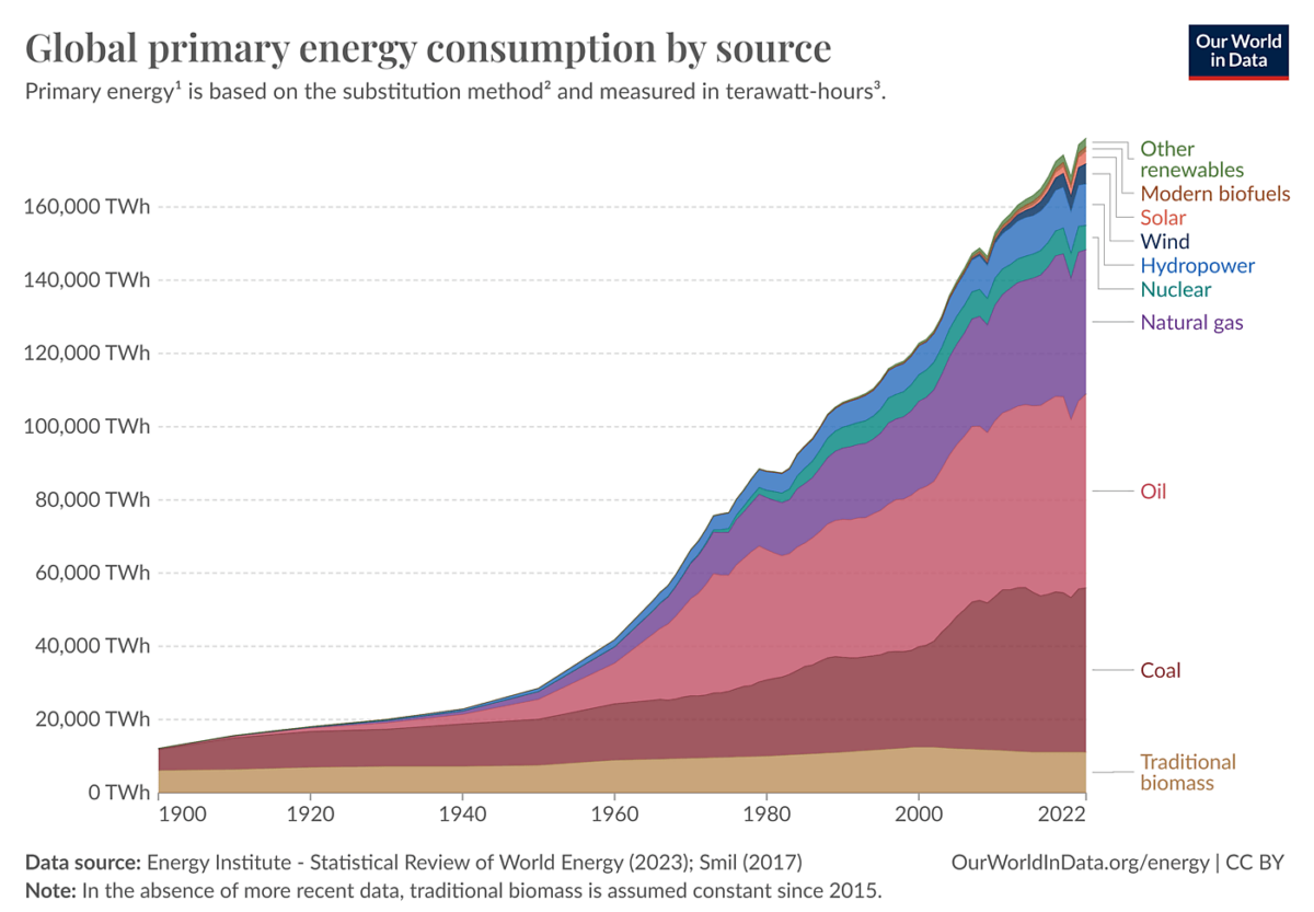 Sin embargo, el Dr. Kenny va más allá de lo que sugieren los economistas del libre mercado cuando se trata de mitigar la externalidad del CO2. Apoya el objetivo de «cero emisiones netas» de CO2 y aboga por un sistema mundial de límites máximos y comercio para lograrlo. Al leer el artículo del Dr. Kenny, nos llevamos la impresión de que el CO2 es un mal sin paliativos; en cambio, nosotros lo vemos como el resultado del uso productivo de la energía de hidrocarburos, que representa más del 80% del uso mundial de energía primaria. Debemos evitar los llamamientos a abandonar rápidamente los hidrocarburos simplemente porque (probablemente) introducen una externalidad negativa, especialmente cuando no se tiene bien en cuenta el costo de esa transición energética.