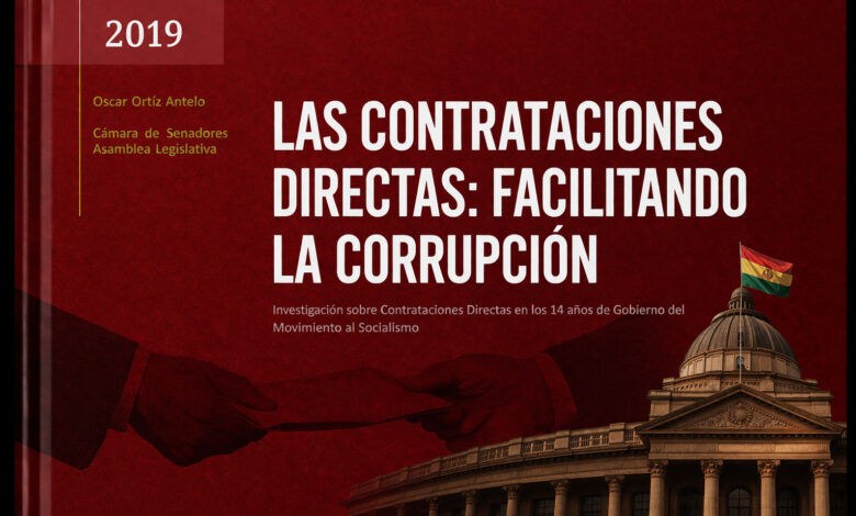 Un informe elaborado por Oscar Ortiz Antelo analiza el uso de las contrataciones directas en Bolivia durante el periodo 2007–2019, señalando un progresivo debilitamiento de los mecanismos de transparencia en la administración de recursos públicos.
